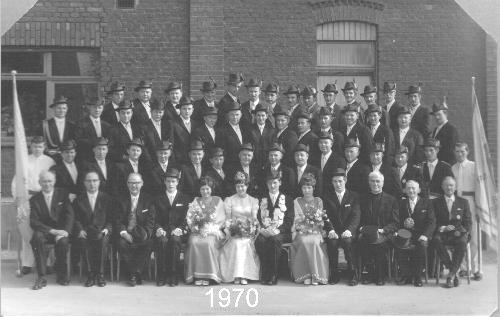 Königspaar: Willi Düngelhoef u. Klara Esser Thronpaar links: Johannes Peters u. Hanni Holtmann Thronpaar rechts: Johannes Heussen u. Gertrud Wormland