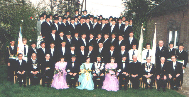 Königspaar: Gerhard u. Adele Does geb van Leuk Thronpaar links: Hermann-Josef u. Angelika Wans geb. Ott Thronpaar rechts: Fritz Petzchen u. Annegret Rochner