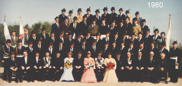 Königspaar: Johannes u. Maria Ingenbleek geb. Wormland Thronpaar links: Willi u. Hanni Wans geb. Dirks Thronpaar rechts: Paul u. Margret Otten geb. Grundmann