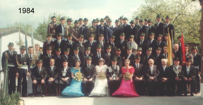 Königspaar: Hermann-Josef u. Angelika Wans geb. Ott Thronpaar links: Gerhard u. Adele Does geb van Leuk Thronpaar rechts: Fritz u. Annegret Petzchen geb.Rochner