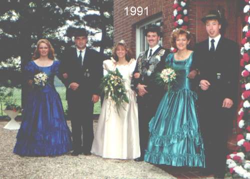 Königspaar: Johannes Schattmann u. Angelika Ingenbleek Thronpaar links: Johannes u. Petra Baaken geb Bous Thronpaar rechts: Theo Aymans u. Annelise Opgenhoff