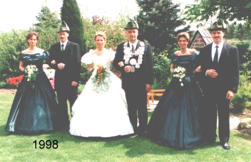 Königspaar: Johannes u. Petra Baaken geb. Bous Thronpaar links: Gerhard u. Elke Gietmann geb Katen Thronpaar rechts Johannes u. Angelika Schattmann geb. Ingenbleek