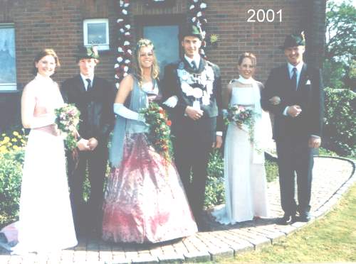 Königspaar: Thomas Deckers u. Nancy Kruithoff Thronpaar links: Andreas u. Nicola Ingenbleek geb. Bous Thronpaar rechts: Paul Kühnen u. Melanie Thalmann