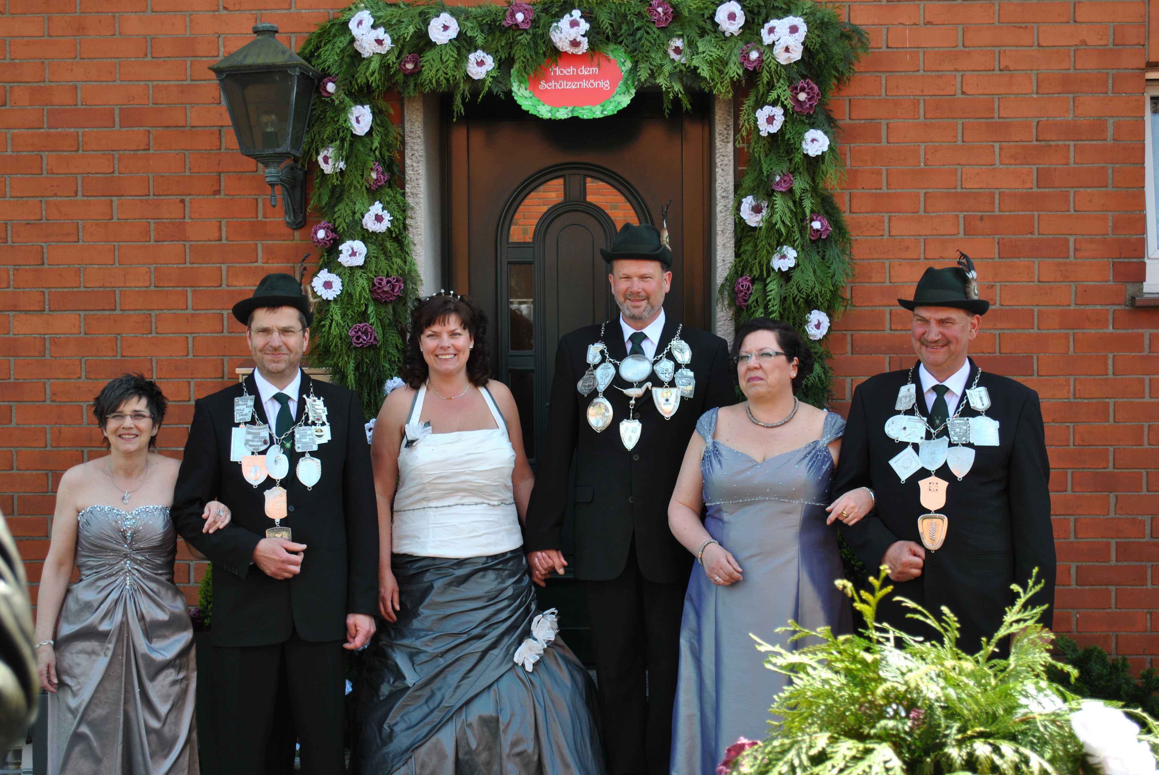 Königspaar: Werner und Elke Hackstein Thronpaar links: Bernhard und Jutta Stenmans Thronpaar rechts: Heiner und Angela Karlheim